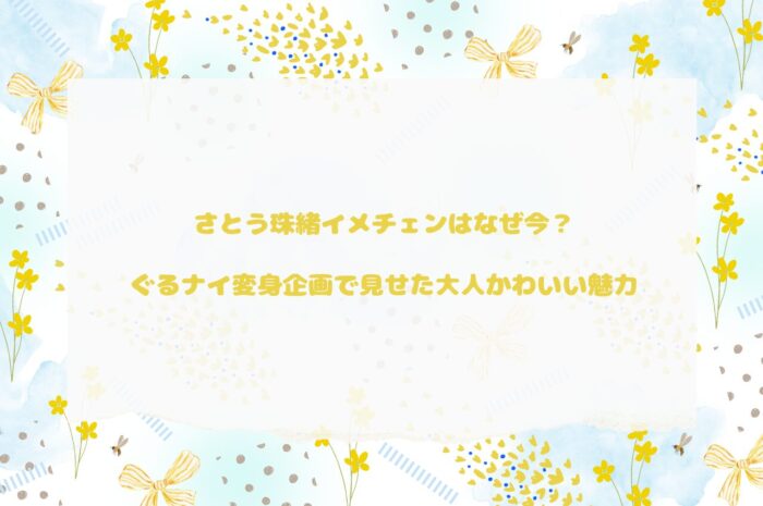タレントのさとう珠緒さんが『ぐるぐるナインティナイン』(日本テレビ系)の人気企画「前髪ぱっつんチェンジ」に登場し、大胆なイメチェン姿を披露しました。1990年代に「ぶりっ子キャラ」で一世を風靡した彼女 […]